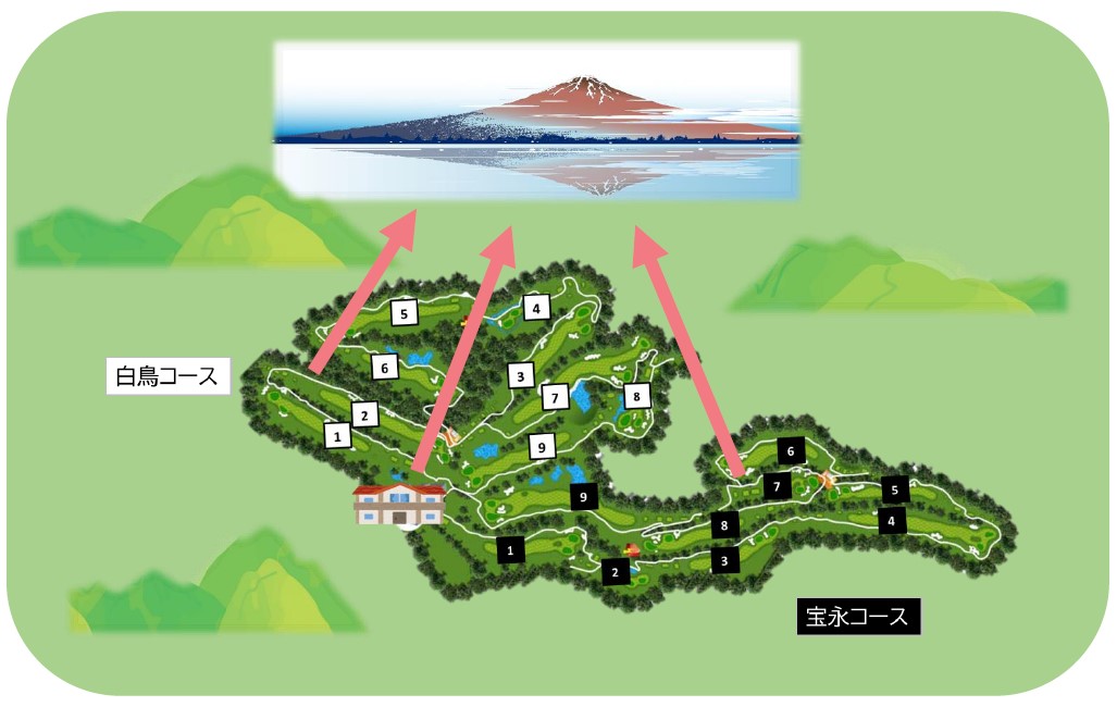 クラブハウスの向きも全て計算されており、ゴルフ場のどこからでも富士山を常に正面に捉えて見ることが出来ます。富嶽CCに来場し、1日に何度もこの光景を見ていると、日本人のDNAが反応、高揚し、日本人としての居る事のありがたみ、感謝の気持ちが素直に湧いてきます。
